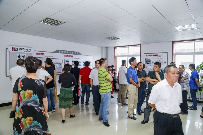 會(huì)議結(jié)束后,全體與會(huì)代表乘坐大巴來到山東哈大電氣有限公司八角工業(yè)園廠區(qū)考察指導(dǎo),圖為與會(huì)代表正在榮譽(yù)資質(zhì)展示廳了解哈大電氣的發(fā)展沿革、資質(zhì)、榮譽(yù)、典型工程等基本情況。