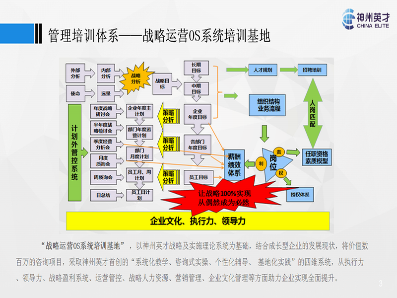 神州英才致力于中國成長型企業(yè)的正規(guī)化、國際化、持續(xù)化,專注于為中國成長型企業(yè)提供戰(zhàn)略規(guī)劃、業(yè)務(wù)運(yùn)營管理、品牌營銷、人力資源管理、企業(yè)文化等管理咨詢與培訓(xùn)服務(wù),同時(shí)通過多 層次資本服務(wù)平臺(tái)為中小企業(yè)提供企業(yè)上市、企業(yè)并購、企業(yè)投融資等相關(guān)服務(wù)。